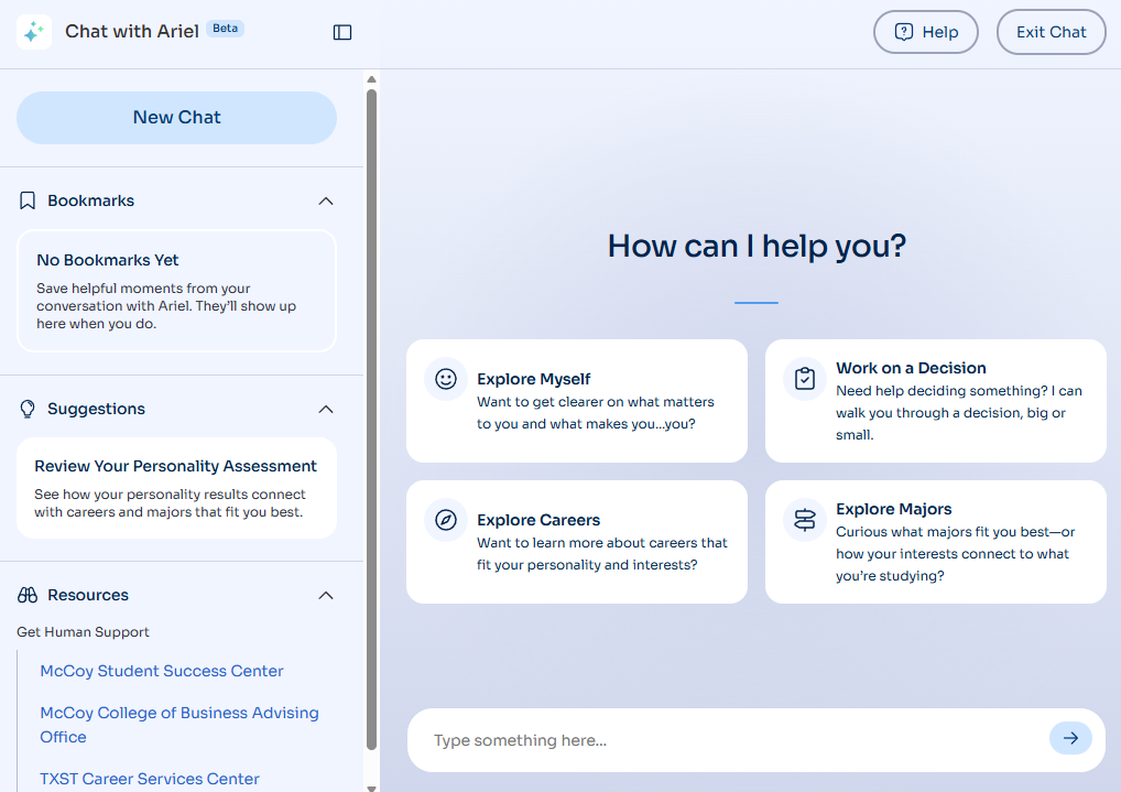Ariel, our AI assistant, engages students showing decision difficulty or motivation to take next steps — building AI literacy while supporting career development. Students get coaching when they need it.
